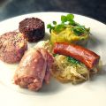 Quelle: kuechengoetter.de"Hausmanns" Schlachtplatte mit Sauerkraut und Erbspüree Zutaten SCHLACHTPLATTE: 1 gepökeltes Schinkeneisbein von 1,2 -1,5 kg 3 Liter ungesalzene Fleischbrühe[...]
