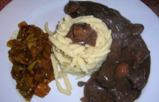 zutaten_2sp"> Zutaten für Personen Rezept mit Bild: Hirschgulasch mit Maronen und Spätzle mit einer Beilage von Mango Chutney Bild einstellen 1 ½ kg Hirschgulasch 125 ml trockener Rotwein Salz, Pfeffer [...]