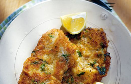 Kalbsschnitzel mit Kräuterpanade Zutaten 4 Kalbschnitzel (à ca. 150 g) Salz Pfeffer 5 Scheiben Toastbrot (ca. 100 g) 1 Bund kleinblättriges Basilikum (»Piccolo«) 2 EL Mehl 2 Eier (Größe M) 3 EL Butterschmalz oder Öl zum Braten 1 Bio-Zitrone guk:similarity-keywords=""> [...]