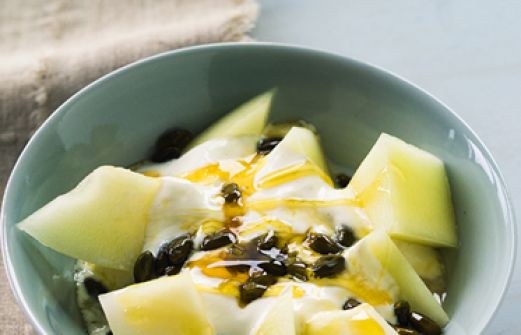 Joghurt mit Melone und Pistazien Zutaten 500 g Sahnejoghurt (mind. 10 % Fett) 1/2 Vanilleschote (Mark) 1-2 EL Zucker 3-4 EL Pistazienkerne 3-4 EL flüssiger Honig 1 Honigmelone guk:similarity-keywords=""> 500 g Sahnejoghurt (mind. 10 % Fett) , 1/2 Vanilleschote (Mark) , [...]