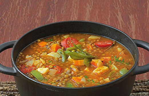 Linsen-Wurzelgemüse-Eintopf Zutaten 1 Knoblauchknolle 250 g Möhren 250 g Kartoffeln 150 g Knollensellerie 1 Zwiebel 1 grüne Paprikaschote 3 EL Olivenöl 2 EL Tomatenmark je 1 TL mildes und scharfes Paprikapulver 250 g kleine grüne Linsen (Puy-Linsen) 2 TL getrockneter Thy [...]
