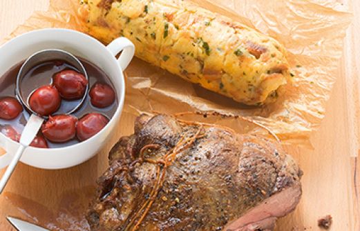 Rehkeule mit Pfefferkirschen und Serviettenknödel Zutaten 1 Rehkeule (ohne Knochen, ca. 1,5 kg) Salz Pfeffer 3 EL neutrales Pflanzenöl 50 g Butter ¼ l Wildfond 8 altbackene Brötchen (ca. 400 g) 400 ml Milch 3 Eier 2 Schalotten ½ Bund Petersilie 2 EL Butter 3 EL Semmel [...]