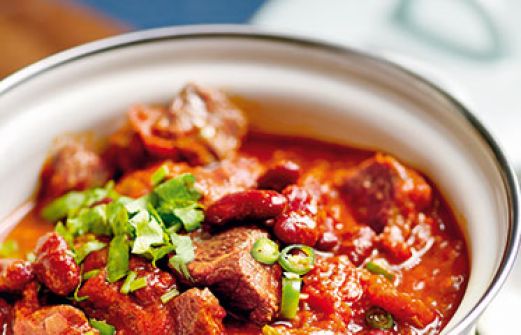 Bohnen-Rindfleisch-Chili Zutaten 350 g getrocknete Kidneybohnen 1/2 Bund Thymian 4 Knoblauchzehen 2 Lorbeerblätter Salz 450 g Rindergulasch (aus der Schulter) 4 Zwiebeln 4 grüne Chilischoten 5 EL Sonnenblumenöl Pfeffer 1 Dose geschälte Tomaten (800 g) 1 EL gemahlener K [...]