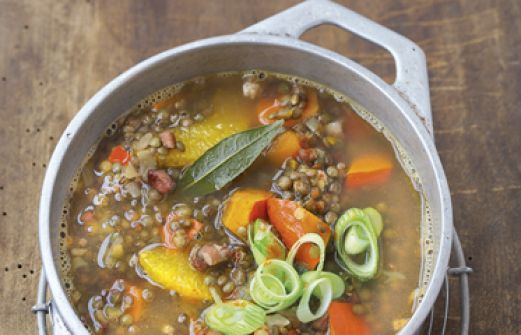 Linsen-Kürbis-Eintopf Zutaten 50 g durchwachsener Räucherspeck 1 Zwiebel 1- 2 Knoblauchzehen 1- 2 EL Öl 250 g kleine grüne Linsen (Puy-Linsen) 1 l Gemüsebrühe 1- 2 Lorbeerblätter 600 g Hokkaido-Kürbis 250 g Möhren 2 Orangen 2- 3 Frühlingszwiebeln Salz Cayennepfeffer [...]