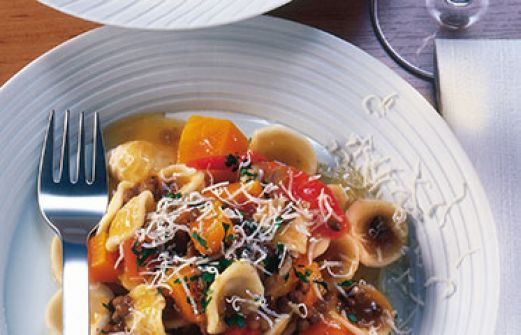 Orecchiette mit Linsen und Kürbis Zutaten 1/2 Bund glatte Petersilie 1 rote Zwiebel 1 Knoblauchzehe 2 Fleischtomaten 300 g Kürbis 2 EL Olivenöl 1 Dose braune Linsen (400 g Füllmenge) 150 ml Gemüsebrühe (Instant) 2 EL Aceto balsamico Salz Pfeffer 400 g Orecchiette (Öhrch [...]