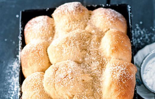 Buchteln Zutaten 200 ml Milch 500 g Mehl (Type 550) 1 Würfel Hefe (42 g) 75 g Zucker 1 Päckchen Bourbon-Vanillezucker 75 g Butter 1 M Ei 2 M Eigelb 1 kräftige Prise Salz 1 TL abgeriebene Schale von 1 Bio-Zitrone Mehl zum Verarbeiten 50 g Butter für die Form Puderzucker z [...]
