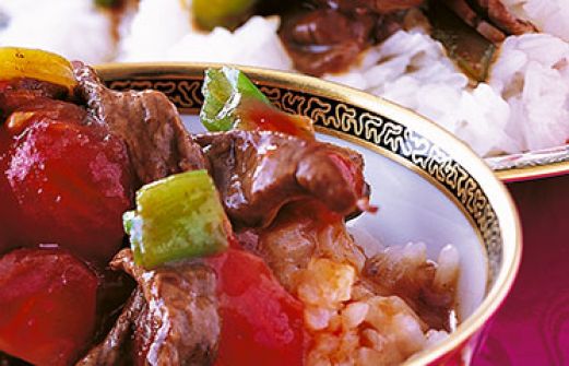 Rindfleisch mit Tomaten Zutaten 500 g Rinderlende oder -filet 200 g feste Tomaten 2 Frühlingszwiebeln 1 Stück Ingwer (2 cm) 4 EL Öl 2 Sternanis 1/8 l Fleischbrühe 2 EL Sojasauce 3 TL Zucker Salz 1 TL Speisestärke guk:similarity-keywords=""> 500 g Rinderlende oder -fi [...]