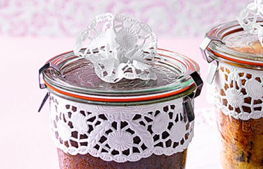 Nusskuchen im Glas Zutaten 250 g Butter 250 g Zucker 150 ml Portwein (oder Orangensaft) 6 Eier (M) 200 g gemahlene Haselnüsse 100 g gehackte Haselnüsse 250 g Mehl 3 EL Kakaopulver 1½ Päckchen Backpulver Butter für die Gläser guk:similarity-keywords=""> 250 g Butter [...]