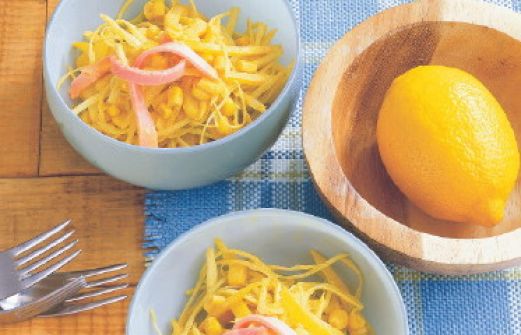 Weißkohlsalat mit Schinken Zutaten 1/2 Kopf Weißkohl (700 g) 2 Paprika 200 g gekochter Schinken 1 Glas knackiger Gemüsemais (370 ml) 200 g Schmand 300 g Vollmilchjoghurt 3 EL Curry-Gewürzketchup 2 EL Zitronensaft Salz Pfeffer Zucker guk:similarity-keywords=""> 1/2 K [...]