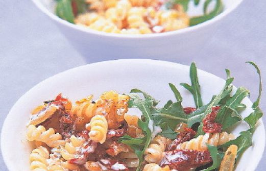 Fusilli mit Bresso und Rucola Zutaten 400 g Nudeln (z. B. Fusilli) Salz 60 g getrocknete Tomaten (in Öl) 1 rote und eine weiße Zwiebel 2 EL Olivenöl 100 ml Schlagsahne 200 g Bresso Olive Pfeffer 100 g Rucola guk:similarity-keywords=""> 400 g Nudeln (z. B. Fusilli) , [...]
