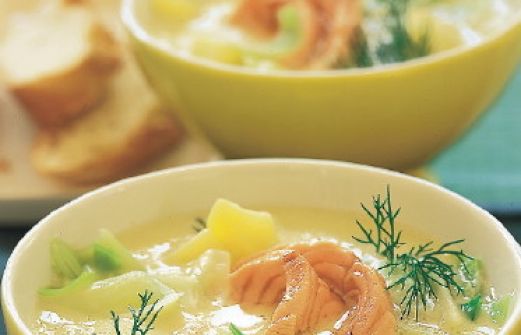Kartoffel-Porree-Suppe mit Lachs Zutaten 1 Stange Porree (400 g) 750 g mehlig kochende Kartoffeln 20 g Butter Salz, Pfeffer, Muskat 1 l Gemüsebrühe 250 g Lachsfilet 100 ml Schlagsahne 1 EL gehackten Dill 2-3 EL Zitronensaft guk:similarity-keywords=""> 1 Stange Porree [...]