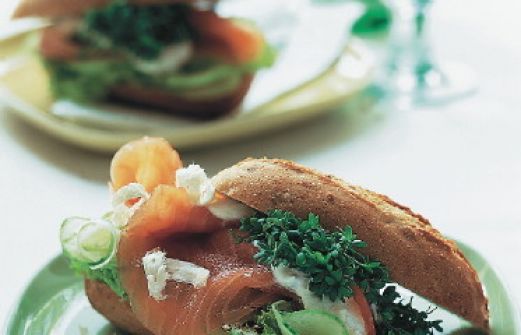 Lachs-Sandwich Zutaten 1 Becher Crème fraîche (125 g) 2 TL Meerrettich (Glas) Salz Pfeffer 1/2 Salatgurke 1 Beet Kresse 4 Vollkorn-Baguettebrötchen 20 g Butter einige Salatblätter 8 Scheiben Räucherlachs (á ca. 40 g) guk:similarity-keywords=""> 1 Becher Crème fraîch [...]