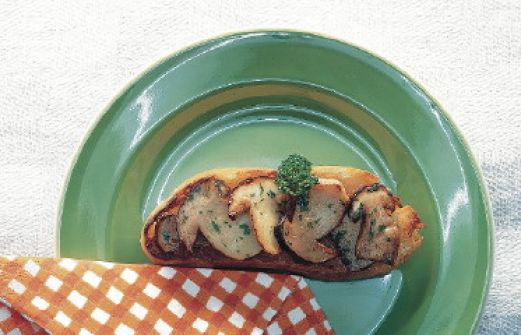 Crostini mit Pilzen Zutaten 350 g Steinpilze oder Champignons 2 Knoblauchzehen 2 Esslöffel Olivenöl 30 g Butter 1 Bund Petersilie Salz Pfeffer Außerdem: 8 Scheiben italienisches Brot 1 Knoblauchzehe 3-4 Esslöffel Olivenöl guk:similarity-keywords=""> 350 g Steinpil [...]