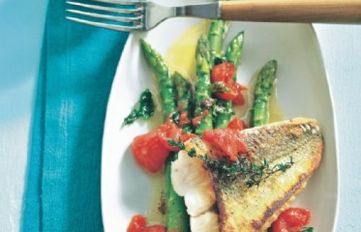 Zanderfilet mit grünem Spargel Zutaten 1 kg grüner Spargel 500 g Strauchtomaten Salz Pfeffer 1 EL Olivenöl 600 g Zanderfilet mit Haut 3 EL Zitronenöl 1 Zweig Thymian 1 kleines Bund Basilikum 40 g Butter guk:similarity-keywords=""> 1 kg grüner Spargel , 500 g [...]