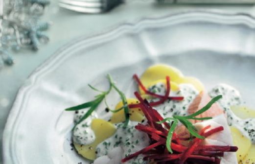 Dreierlei Fischfilet in Estragonrahm Zutaten 800 g festkochende Kartoffeln Salz 300 g Rote Bete (geschält, gekocht, vakuumverpackt) 1 EL Aceto Balsamico Pfeffer aus der Mühle 250 g Crème fraîche 1/4 l Milch 3 geh. EL Estragonsenf 2 EL Schnittlauchröllchen 250 g Lachsfilet [...]