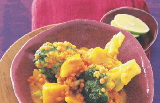 Gemüsecurry Zutaten 125 g rote Linsen Salz 1 kleiner Hokkaido-Kürbis (ca. 900 g) 2 Lauchzwiebeln 1 Stück Ingwerwurzel (ca. 20 g) 3 EL Erdnussöl 2 gestr. TL Chiliflocken (oder 1 getrocknete zerdrückte Chilischote) 2-3 EL milder Curry und abgeriebene Schale von 1 unbehandelten Lim [...]