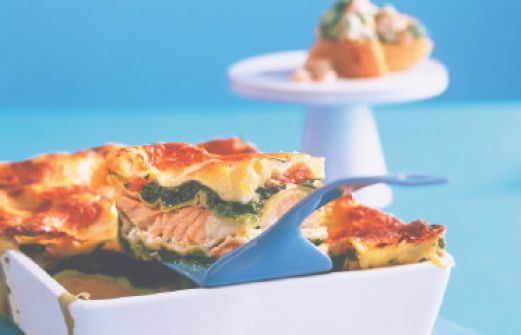 Lachs-Lasagne Zutaten 1 1/2 Packungen portionierbarer TK-Blattspinat (675 g) 1 Knoblauchzehe Salz Pfeffer 50 g Pancetta (italienischer Bauchspeck) oder Bacon 3 Tomaten 80 g Butter 80 g Mehl 3 EL Weißwein 2 EL Orangensaft 3/4 l Milch 180 g Grana Padano oder Parmesankäse [...]