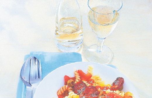 Fusilli mit Paprika und Chorizo Zutaten je 1 rote und gelbe Paprikaschote 1 Zwiebel 400 g Fusilli Salz 150 g Chorizo (scharfe spanische Salami) in dünnen Scheiben 2 EL Olivenöl Pfeffer 500 g Tomatenstückchen (aus der Packung) 3 EL grüne Oliven (ohne Stein) 1 Bund Petersilie [...]