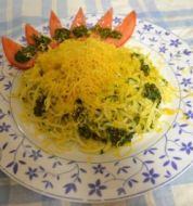 Spaghetti con pesto Zutaten 100 g Rucola (geputzt) 50 g glatte Petersilienblättchen 50 g Pinienkerne 70 g frisch geriebener Parmesankäse 2 Knoblauchzehen (abgezogen) Salz Pfeffer ca. 200 ml Olivenöl 400 g Spaghetti guk:similarity-keywords=""> 100 g Rucola (geputzt) , [...]
