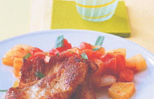 Putenfleisch mit Ananas Zutaten 600 g Tomaten 2 Zwiebeln 40 g Ingwer 4 Putenschnitzel (600 g) Salz Pfeffer 2 EL Olivenöl 1 Dose Ananasstücke (260 g Abtropfgewicht) 2 EL süß-scharfe Chilisoße guk:similarity-keywords=""> 600 g Tomaten , 2 Zwiebeln , 40 g I [...]