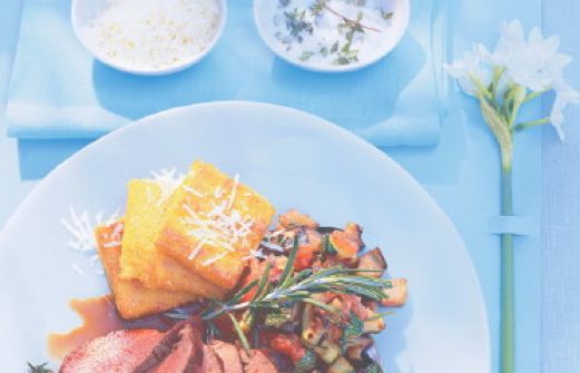 Lammfilet auf Ratatouille Zutaten 4 Schalotten 1 Knoblauchzehe 600 g Zucchini 1 große Aubergine (ca. 500 g) 600 g Tomaten 2 EL Rosmarinnadeln 1/2 Bund Thymian 6 EL Olivenöl 1 kg Lammrückenfilet Salz Pfeffer je 2 EL Honig und Teriyaki-Soße für Fleisch 800 ml Gemüsebrü [...]