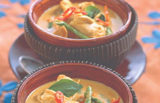 Hähnchen-Curry mit Kokos Zutaten 2 Dosen Kokosmilch (á 400 ml) 1 Tütchen Panang-Currypaste (50 g) 1 EL zerkleinerter Palmzucker oder brauner Zucker 2 EL Fischsoße 4 Kaffir-Limettenblätter 100 g Schlangenbohnen oder feine grüne Bohnen 800 g Hähnchenbrustfilet 2 EL Erdnussöl ca. 2 [...]