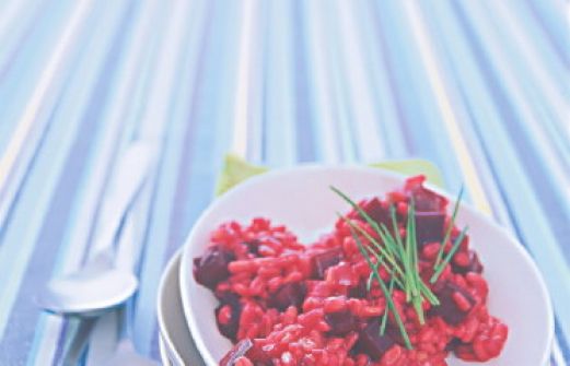 Rote-Bete-Weizenrisotto Zutaten 500 g Rote Bete (gekocht, geschält und vakuumverpackt) 100 g Zwiebeln 2 EL Öl 20 g Butter 300 g Ebly-Zartweizen (fertig in 10 Minuten) 1/4 l Rote-Bete-Saft Salz Pfeffer 1/2 l Gemüse-Hefebrühe (aus Paste, Reformhaus) 1 Bund Schnittlauch 50 g [...]