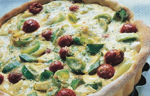 Gemüsekuchen mit Porree Zutaten 1 Beutel Fix-Teig für Pizza und Gemüsekuchen 1 EL Öl 20 g Butter 500 g Porree Salz Pfeffer 3 Eier 1 Becher saure Sahne (200 g) 2 EL gehackte Petersilie 150 g Greyerzer Käse (geraspelt) Pfeffer 150 g Kirschtomaten guk:similarity-keywo [...]