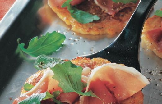 Kartoffelpuffer mit Parmaschinken Zutaten 16 tiefgefrorene Kartoffelpuffer (für den Backofen) 100 g Rucola 8 Scheiben Parmaschinken (ca. 150 g) Pfeffer guk:similarity-keywords=""> 16 tiefgefrorene Kartoffelpuffer (für den Backofen) , 100 g Rucola , 8 Scheiben Par [...]
