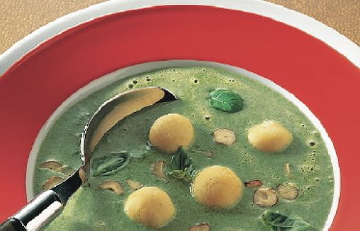 Spinatsuppe mit Klößchen Zutaten 1 Packung Knödelpulver halb und halb (für 8 Klöße) 1 Zwiebel (50 g) 30 g Butter oder Margarine 1 Packung tiefgefrorener Blattspinat (300 g) 600 ml Hühnerbrühe 1 Becher Crème fraîche (150 g) abgeriebene Schale von 1 unbehandelten Zitrone Salz Zu [...]