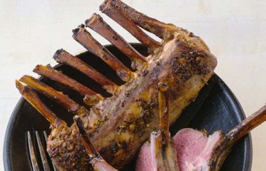 Lammkoteletts Zutaten 1 kleiner Zweig Rosmarin 1 Knoblauchzehe 10 grüne Pfefferkörner (aus dem Glas) 1 EL scharfer grober Senf 2 EL Olivenöl 2 TL Salz 1/2 TL Rohrzucker 1 Lammmkarree /ca. 750 g, pariert) 1 Handvoll Apfelholz-Chips 1 TL getrocknete Roosmarinnadeln guk:simila [...]