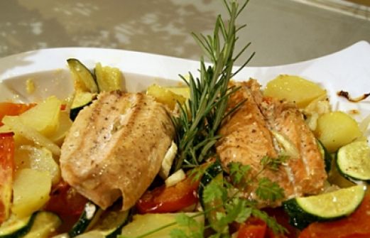 Menge Zutat 2 Pk TK-Lachs 500 g Kartoffeln 2 Zucchini 1 Fenchelknolle 300 g Tomaten Salz Pfeffer [...]