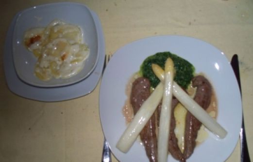 zutaten_2sp"> Zutaten für Personen Bild einstellen 6 Stück Lammfilet 6 Stangen weißer Spargel 1 Päckchen Rahmspinat tiefgefroren, kleinste Größel 50 g Butter 2 Stück Salbeiblätter Rezept Zubereitung Lammfilet mi [...]