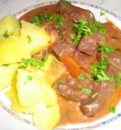 zutaten_2sp"> Zutaten für Personen Bild einstellen 600 g Rindergulasch 3 Schalotten 1 gelbe und orangene Paprika 2 EL Tomatenmark 1/2 L Gemüsebrühe 200 ml trockener Rotwein 5 Eiertomaten 12 grüne Oliven mit Paprik [...]