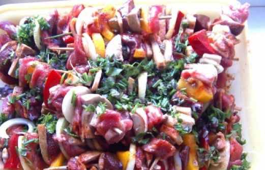 zutaten_2sp"> Zutaten für Personen Rezept mit Bild: Schaschlik Bild einstellen 300 Gramm Schweinefleisch 200 Gramm Schweineleber 50 Gramm Speck 100 Gramm Zwiebeln frisch 2 Stück Gemüsepaprika gelb frisch [...]