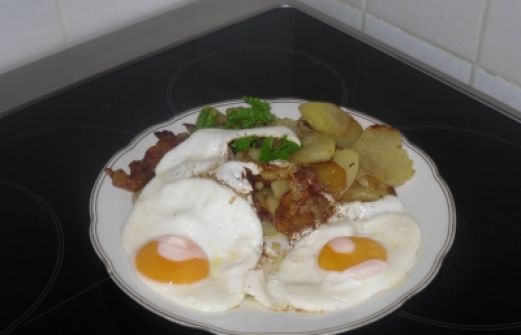 Menge Zutat 800 g Kartoffeln 100 g geräucherter, durchwachsener Speck (Stück) 1 St mittelgroße Zwiebel 4 EL Öl etwas Salz und Pfeffer 3 S [...]