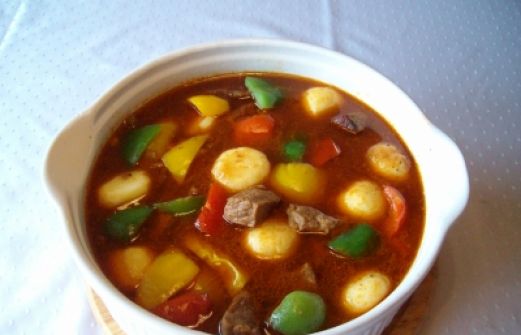 Menge Zutat 500 g Rindergulasch 3 St Zwiebeln 1 St rote Paprika 1 St grüne Paprika 1 St gelbe Paprika 2 St Knoblauchzehen [...]