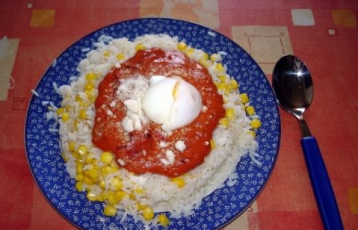 Reis mit Mais und Tomatensoße