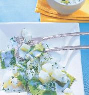 Menge Zutat 4 St Kohlrabi (je ca. 200 g) Butter 150 ml Gemüsebouillon (heiß) 4 St Lachstranchen (je ca. 180 g) Salz Pfe [...]