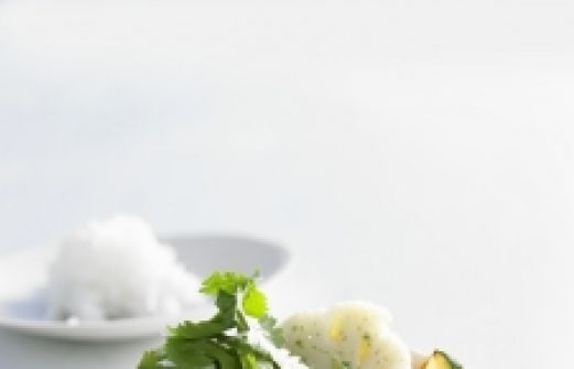 Menge Zutat 2 Zwiebeln 2 Knoblauchzehen 1 Stg Zitronengras 3 EL ÖL 2 grüne Currypaste 400 ml Kokosmilch (ungesüßt; Dose) [...]
