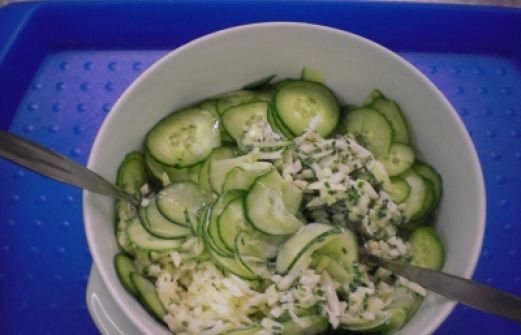 Menge Zutat 1 St Salatgurke 5 Bl Minze 12 Bl Melisse 2 EL Creme fraiche 2 EL Saure Sahne etwas Salz 1 g [...]