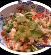 Menge Zutat 1 Dose Mais 1 Dose Erbsen 1 Dose Pilze 1 große Zwiebel 1 Pk Dressing (Fertigpulver) etwas Essig und Öl [...]