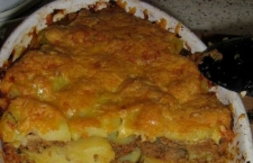 Menge Zutat 1 1/2 kg gekochte Kartoffeln,geschält und in 1/2 cm dicken Scheiben 2 mittlere Zwiebeln 25 g Butter 350 g gemischtes Hackfleisch 1 TL geriebe [...]