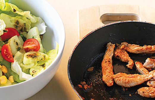 Bunter Salat mit Putenstreifen Zutaten ¼ TL Senf 1 EL Aceto balsamico 3 EL Olivenöl Salz Pfeffer 1 EL TK-Salatkräuter ca. 80 g Blattsalat (z. B. Lollo rosso oder Kopfsalat) 3 Kirschtomaten 1 Stück Salatgurke (ca. 50 g) 3 EL Maiskörner (aus der Dose) 1 kleines Putenschnitzel [...]