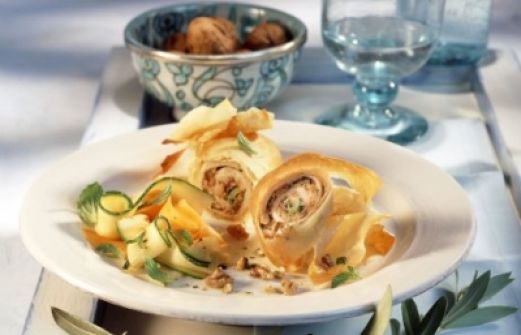 Menge Zutat 4 dünne Putenschnitzel 1 Prise Pfeffer aus der Mühle 1 Knoblauchzehe 2 EL Öl 4 EL fein geschnittene Kräuter 150 g Walnüs [...]