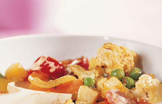 Gemüsecurry mit Zitronenreis Zutaten gut 1 kg gemischtes Gemüse (z.B. fest kochende Kartoffeln, Möhren, Lauch, rote Paprikaschoten, Wirsing, Blumenkohl, Erbsen und Cocktailtomaten) 1 große Zwiebel 1 Stück frischer Ingwer (2 cm) je 1 1/2 TL Kreuzkümmel- und Koriandersamen 2 getrockn [...]