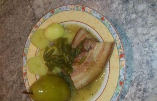 Zutaten für Personen Rezept mit Bild: Birnen, Bohnen und Speck mit Kartoffeln a la Netti Bild einstellen 4 Scheiben geraucherter Schweinebauch 1 große Zwiebel 500 g grüne Bohnen Bohnenkraut 4 kleine Koc [...]