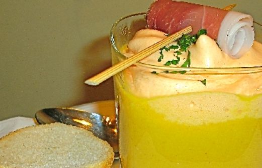 Kürbissuppe mit Chilischaum Zutaten 300 g Kürbisfleisch vom Napoli klein geschnitten 1 kleine Zwiebel fein geschnitten 2 Zehen Knoblauch gehackt 1 kleine Kartoffel, geschält, gewürfelt 1 TL Ingwer gehackt 1 kleine Karotte klein geschnitten 2 EL Rapsöl 1/2 Lit. Klare Suppe 1/8 Lit. [...]