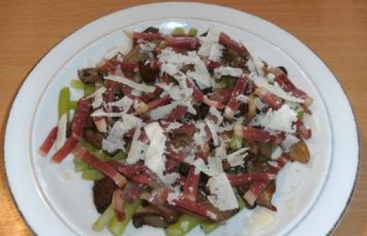 Zutaten für Personen Rezept mit Bild: Gemüse: Grüner Spargel mit Austernpilzen und Serano-Schinken Bild einstellen 120 g Grüner Spargel 200 g Austernpilze 50 g Serano-Schinken Parmesan Salz Pfeffe [...]
