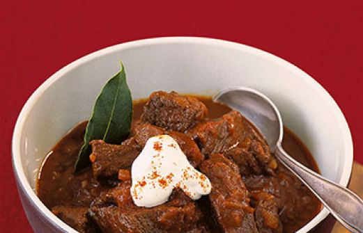 Rindergulasch Zutaten 400 g Rindergulasch 400 g Zwiebeln (ca. 5 Stück) 2 EL neutrales Öl 2 EL Tomatenmark Salz Pfeffer edelsüßes und rosenscharfes Paprikapulver 2 Lorbeerblätter 4 EL Schmand (24 %) guk:similarity-keywords=""> 400 g Rindergulasch , 400 g Zwiebeln [...]